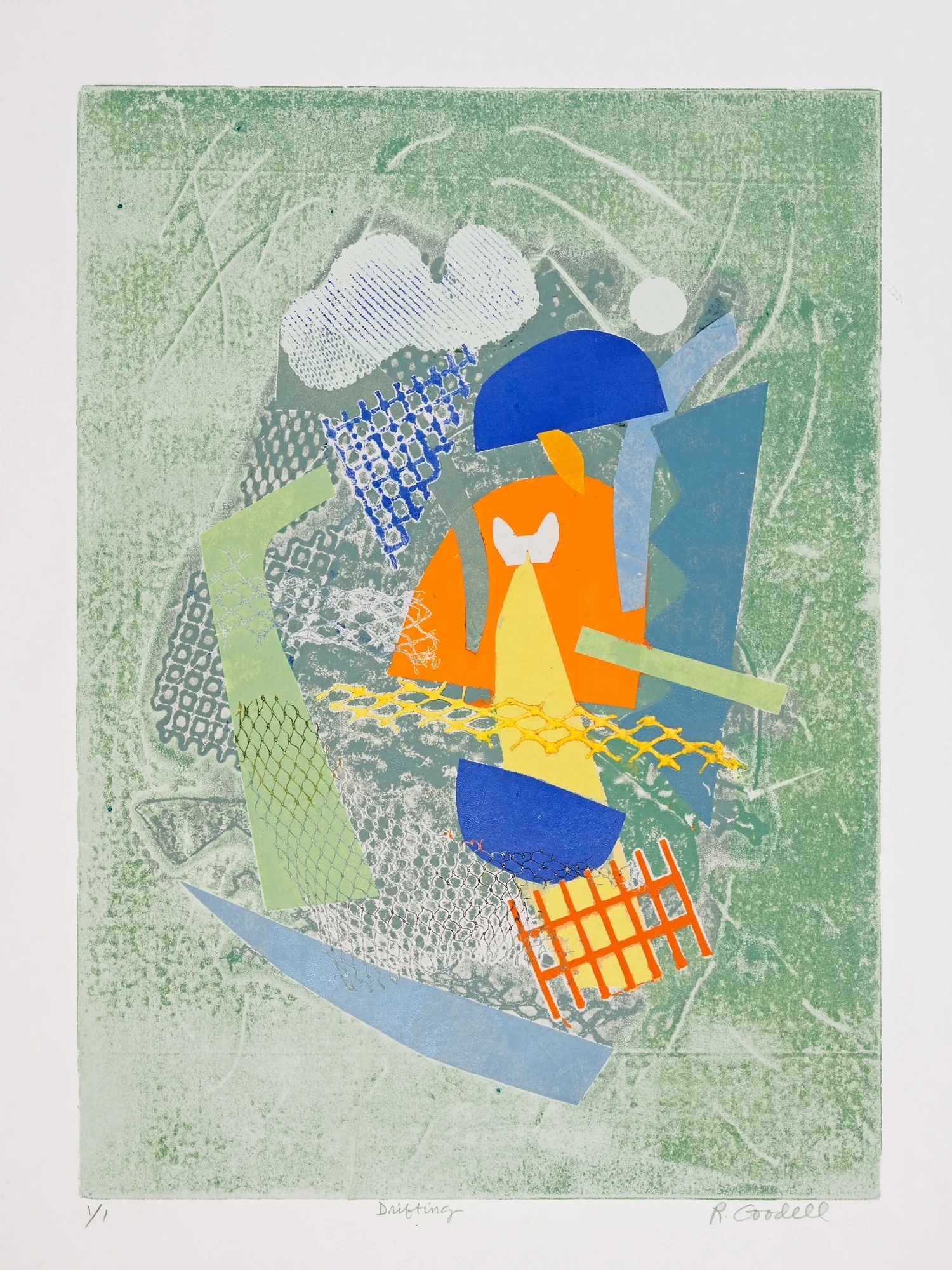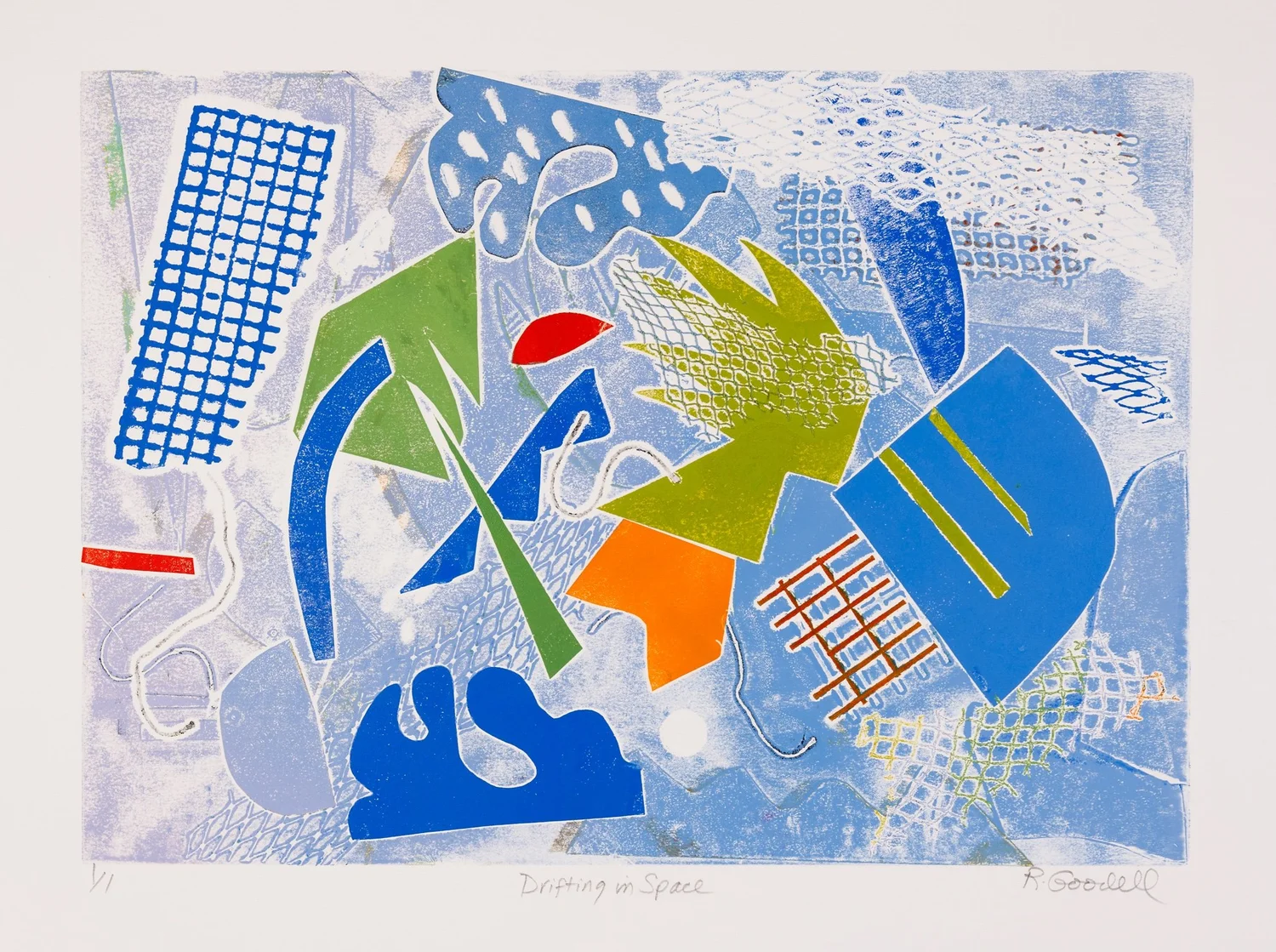 Drifting in Space   Monoprint on BFK Paper  Signed, titled and numbered “1/1”  15 x 21 in., image size; 22 x 30 in., paper    Click to Inquire