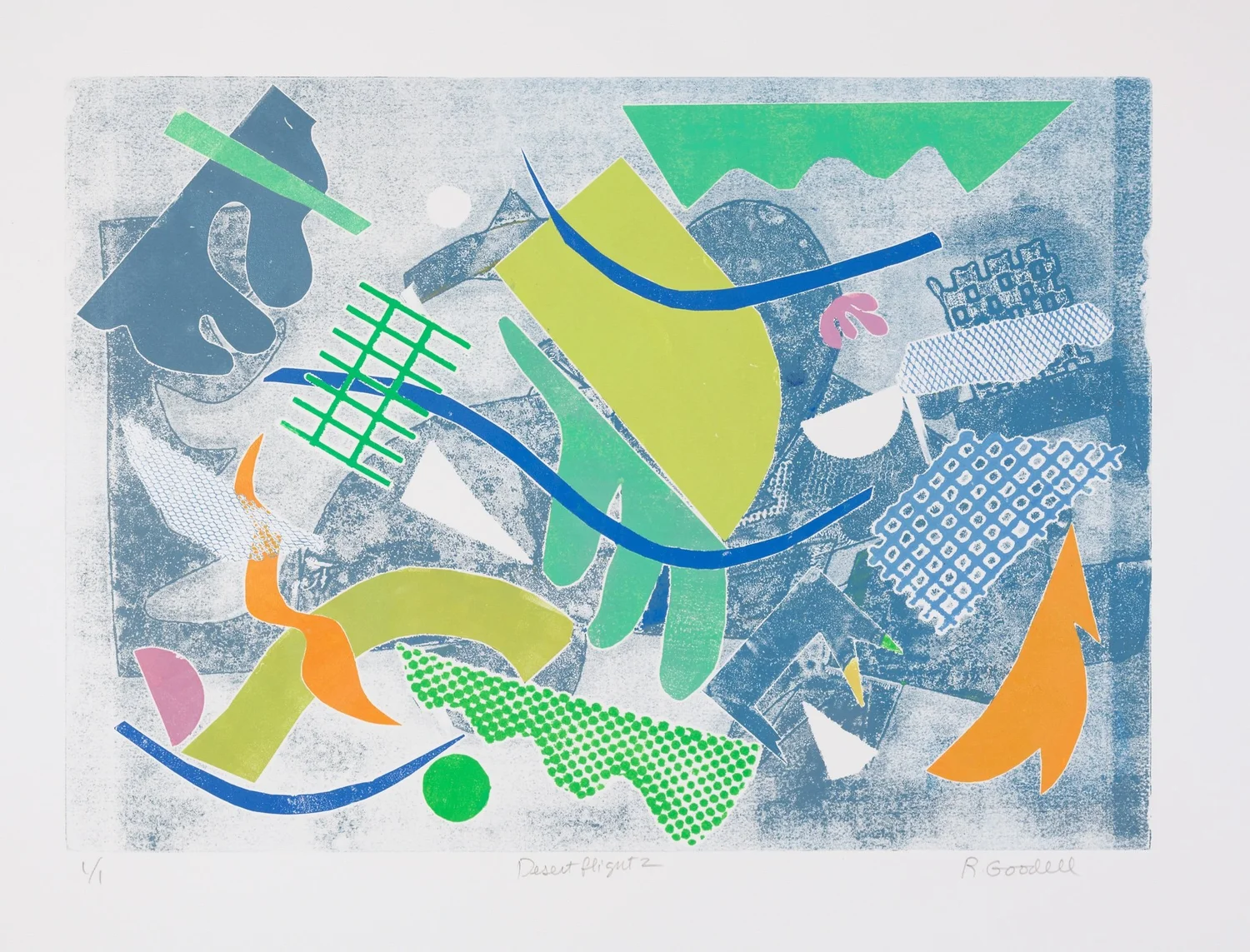 Desert Flight, #3   Monoprint on BFK Paper  Signed, titled and numbered “1/1”  15 x 21 in., image size; 22 x 30 in., paper    Click to Inquire