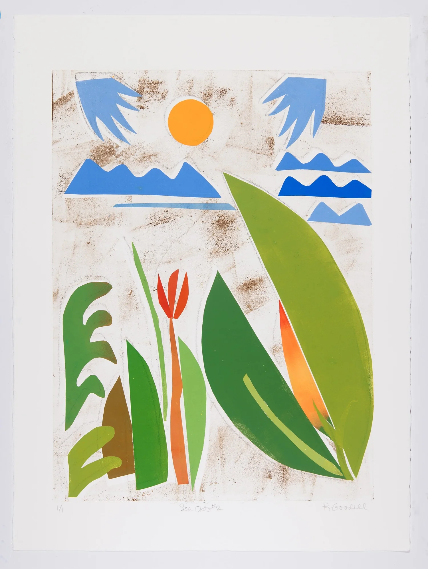 Sea Oats, #2   Monoprint on BFK Paper  Signed, titled and numbered “1/1”  24 x 18 in., image size; 30 x 22 in., paper    Click to Inquire