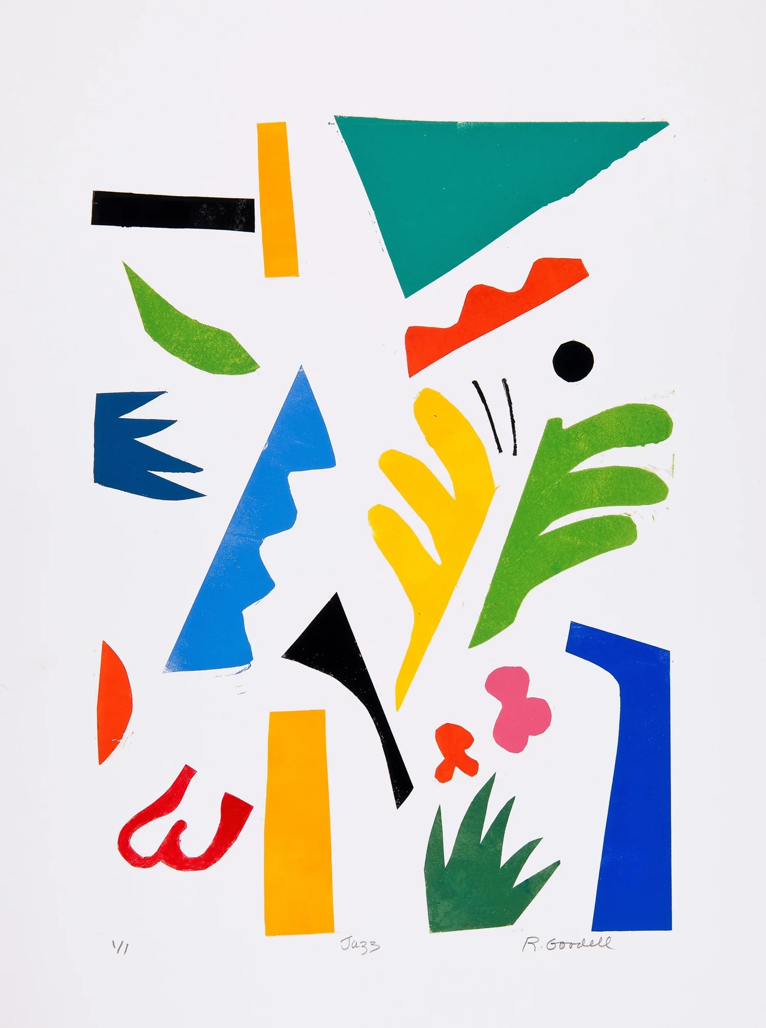 Jazz   Monoprint on BFK Paper  Signed, titled and numbered “1/1”  21 x 15 in., image size; 30 x 22 in., paper     Click to Inquire