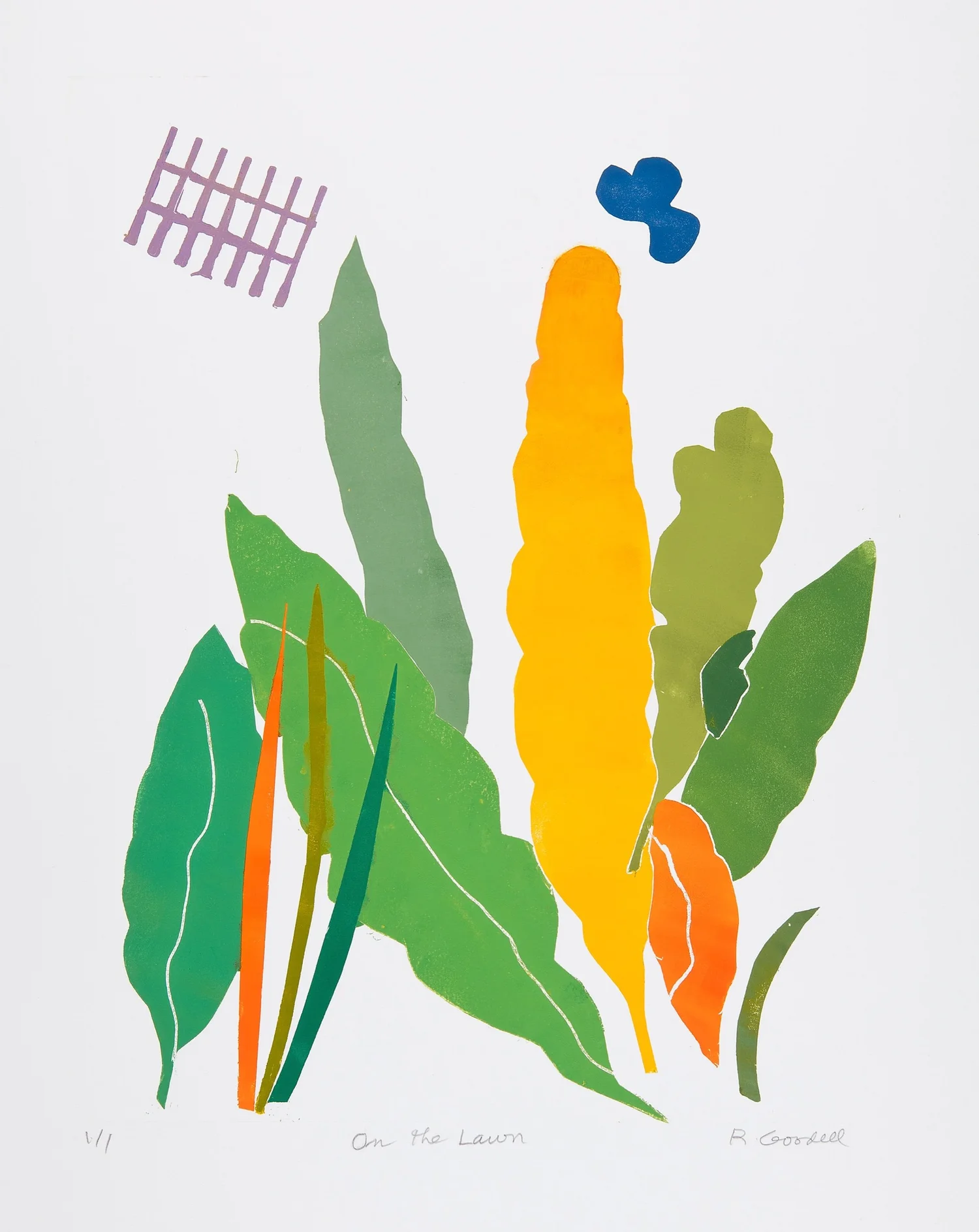 On the Lawn   Monoprint on BFK Paper  Signed, titled and numbered “1/1”  20 x 16 in., image size; 30 x 22 in., paper    Click to Inquire