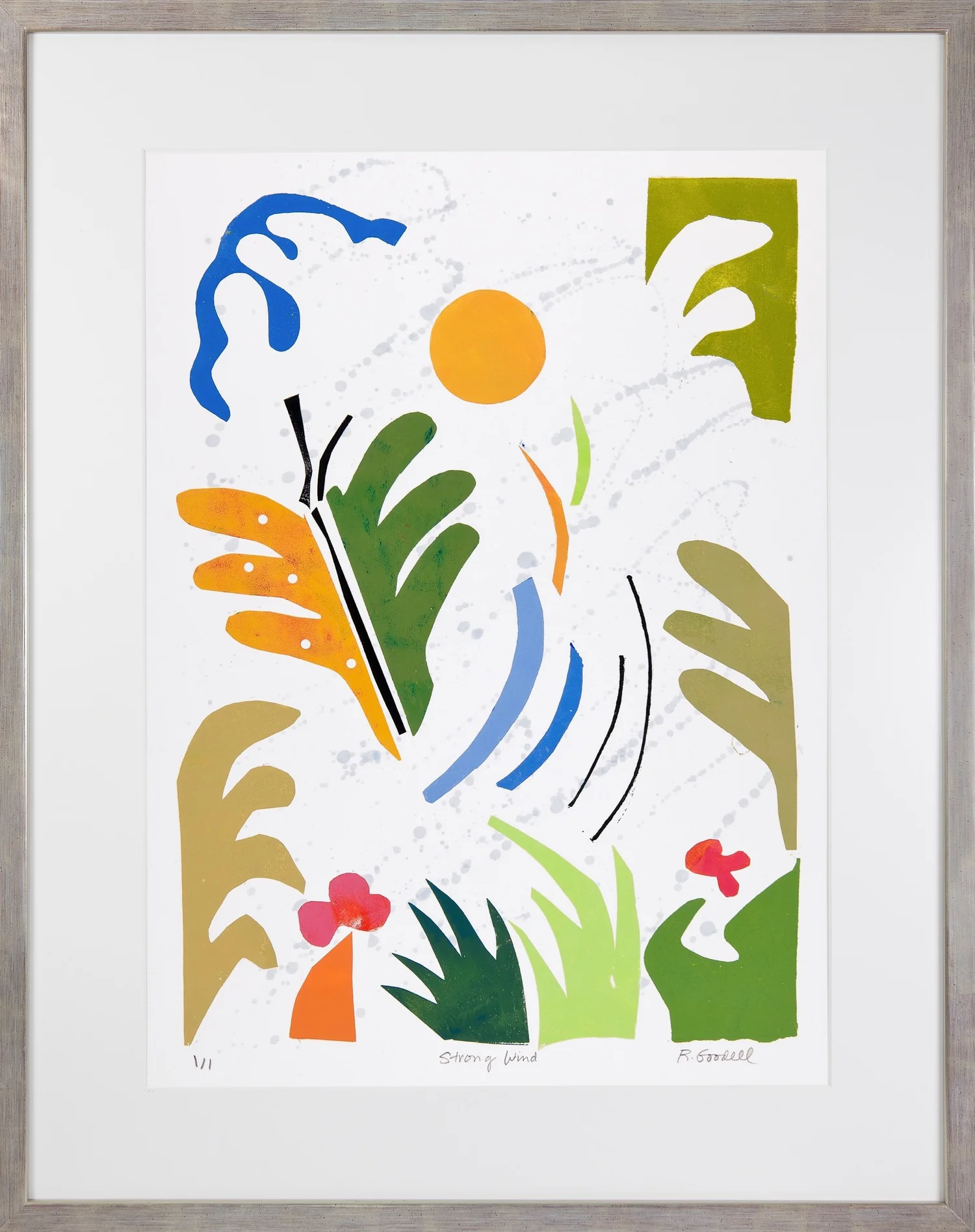 Strong Wind   Monoprint on BFK Paper  Signed, titled and numbered “1/1”  30 x 23.75 in., framed     Click to Inquire