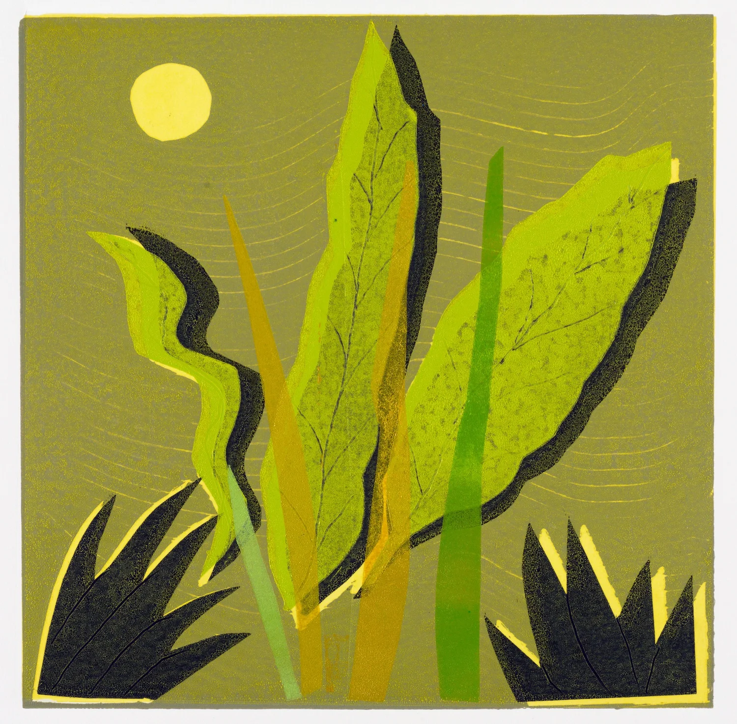 Moonlight   Monoprint on BFK Paper  Signed, titled and numbered “1/1” on front  12 x 12 in., image size; 22 x 15 in., paper    Click to Inquire